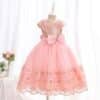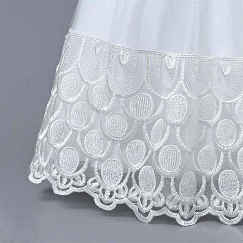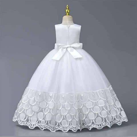 White Lace Tulle Ball Gown with Sheer Pearl Neckline
