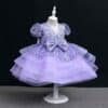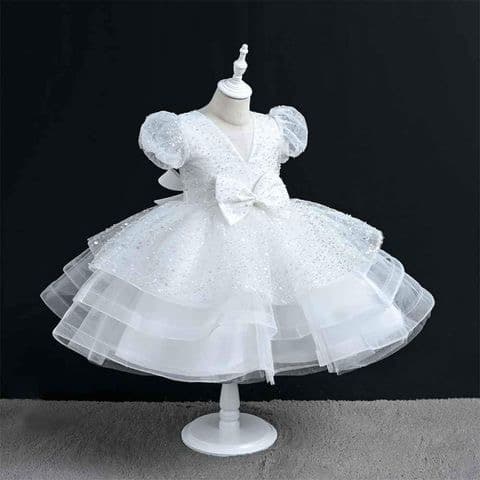White Sparkle Tulle Dress with Puff Sleeves and Bow with headband
